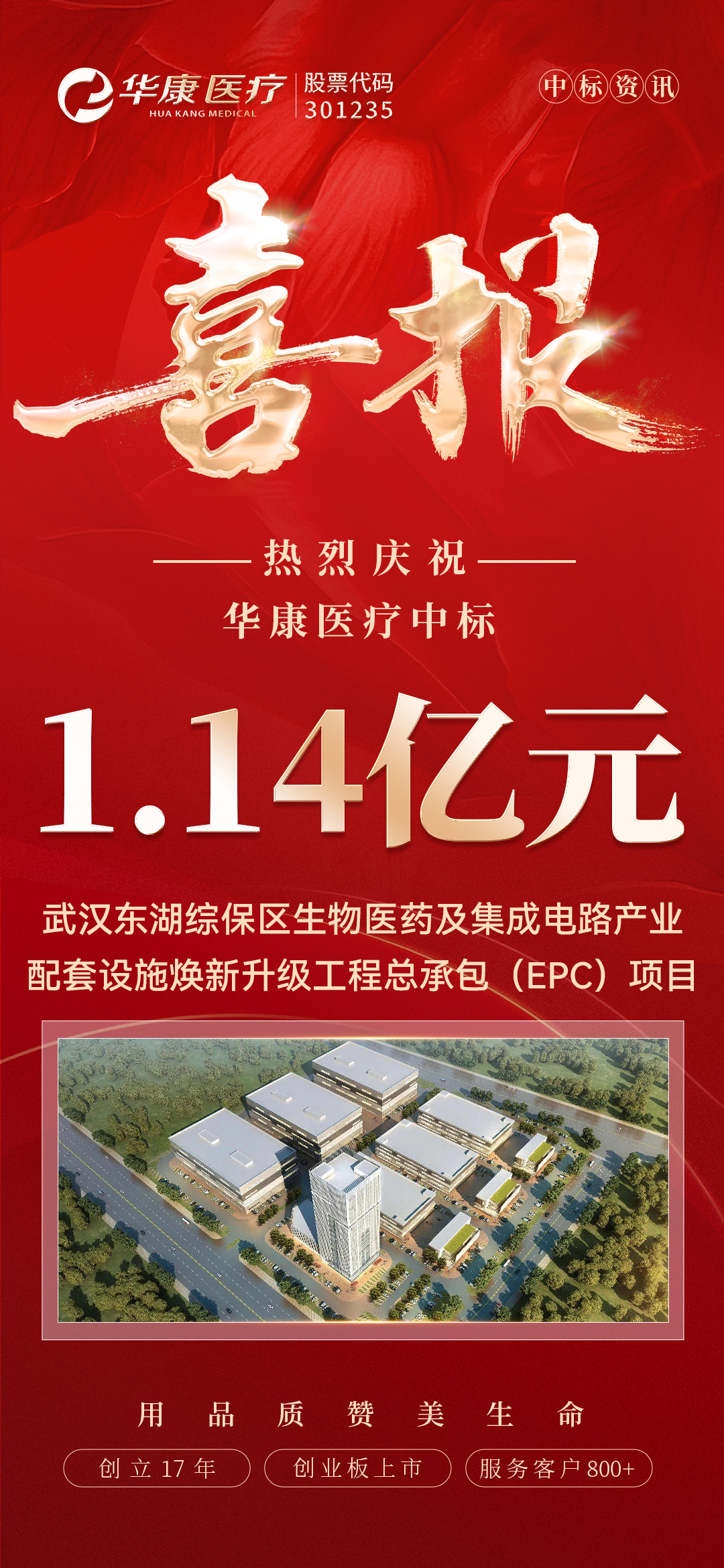 華康醫(yī)療中標武漢東湖綜保區(qū)生物醫(yī)藥及集成電路產(chǎn)業(yè)配套設施煥新升級工程總承包(EPC)項目,中標額1.14億元