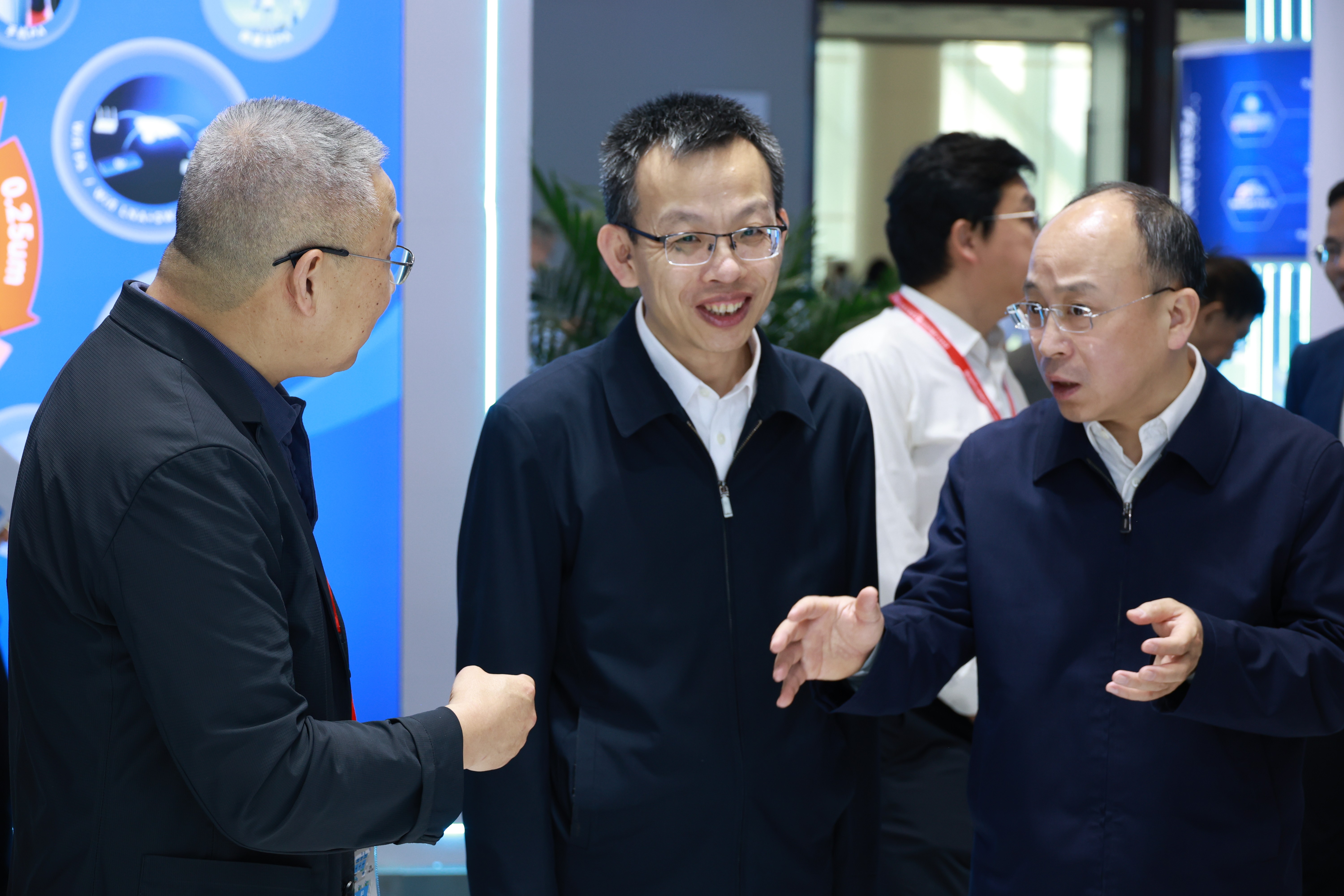 技術(shù)講解結(jié)束后,謝新強總經(jīng)理與武漢市委常委、東湖高新區(qū)黨工委書記沈悅、東湖高新區(qū)管委會主任魯宇清展開現(xiàn)場研討。三人聚焦企業(yè)全鏈條服務(wù)能力建設(shè),就產(chǎn)業(yè)協(xié)同創(chuàng)新、服務(wù)效能提升等議題展開全面而深入的交流,共探區(qū)域產(chǎn)業(yè)高質(zhì)量發(fā)展新路徑。