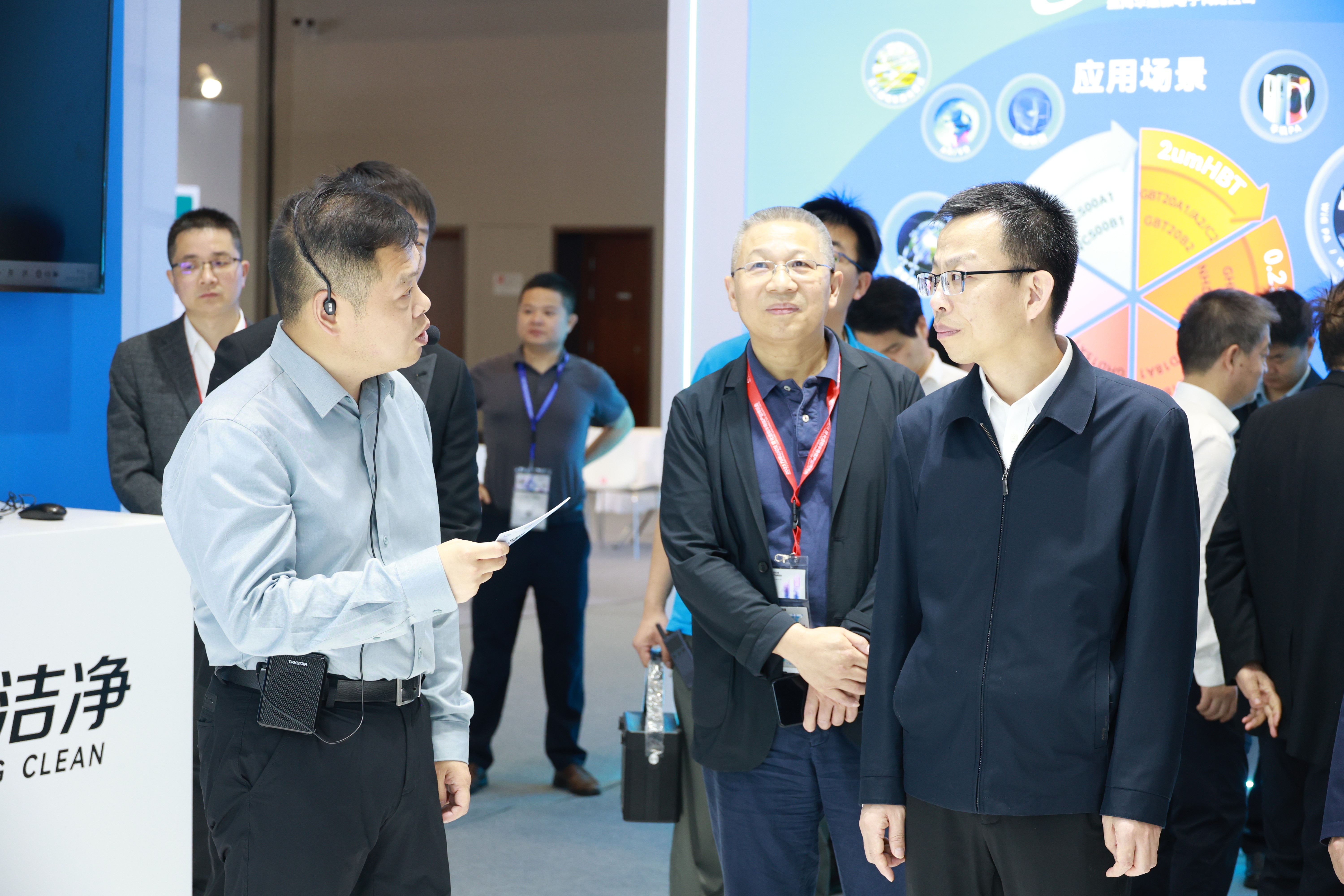 巡館環(huán)節(jié),公司總經(jīng)理謝新強、電子潔凈事業(yè)部副總經(jīng)理譚思晨以企業(yè)嘉賓代表身份參與其中,華康潔凈展臺迎來由院士專家、省市區(qū)各級領(lǐng)導(dǎo)及論壇組委會聯(lián)合組成的高規(guī)格參訪團。華康潔凈董事長助理徐超向參訪嘉賓詳解了公司深耕潔凈室領(lǐng)域十七年的硬核實力,全方位呈現(xiàn)了公司在潔凈室建設(shè)領(lǐng)域的技術(shù)積淀與創(chuàng)新突破,獲得參訪團高度關(guān)注與充分肯定。